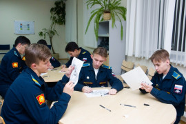 Кадеты 11 «Д» класса Ставропольского ПКУ встретились с педагогом-психологом Евгенией Васильевной Головковой на арт-тренинге «От тревоги к спокойствию: я учусь владеть собой» с целью расширить границы понимания собственных состояний, эмоций и способов их выражения, используя практические способы снятия эмоционального напряжения, стресса в предэкзаменационный период.