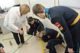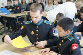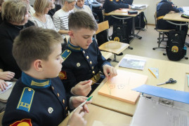 Почему же «Трогательная геометрия»? Задачи можно было потрогать руками. И потому, что урок доказал, что геометрия не отвлечённая от жизни наука, а живая и необходимая. Занятие заинтересовало кадет, тронуло их чувства и вызвало эмоции.