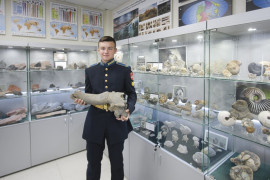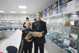 Кадеты 6-10 классов Ставропольского ПКУ – активисты Молодёжного клуба РГО «САРМАТ» – посетили отдел палеонтологии Геологического музея Северо-Кавказского федерального университета. Группа кадет со своими наставниками, преподавателями географии Еленой Витальевной Щербаковой и Людмилой Ивановной Ишковой передали в руки учёных очень интересную находку.