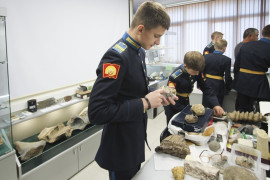 В августе этого года кадет 6 «Е» класса Матвей Келенджеридзе и его брат, кадет 10 «Г» класса Тимофей Повод-Бородкин нашли в северной части города Черкесска на обрывистом берегу реки Кубань ископаемые останки древнего животного. Эта находка и была передана в отдел палеонтологии для дальнейшего исследования. Учёным предстоит провести экспертизу и установить, что это за животное и когда оно жило. После предварительного осмотра, специалисты сделали вывод, что это может быть представитель древних китообразных, обитающих миллионы лет назад в водах, покрывавших территорию Северного Кавказа или окаменевшие останки Плезиозавра-хищного динозавра, хорошо приспособленного к жизни в водоёмах и обитающего на нашей планете несколько сот миллионов лет назад в меловом периоде мезозойской эры. В этом предстоит разобраться учёным-палеонтологам. По мнению Михаила Петровича Шерстюкова, заведующего лабораторным комплексом кафедры геофизических методов поиска и разведки месторождений полезных ископаемых и его коллег палеонтологов, находку можно смело отнести к разряду сенсаций.