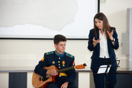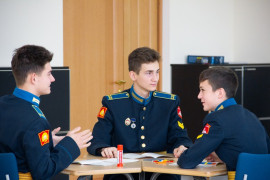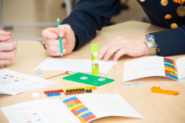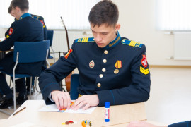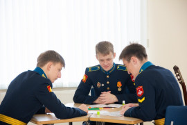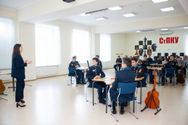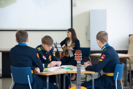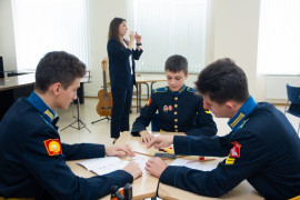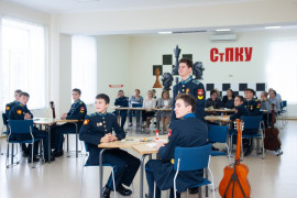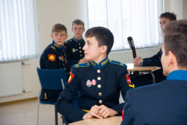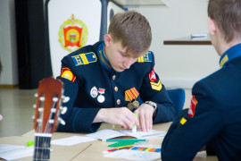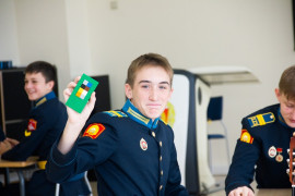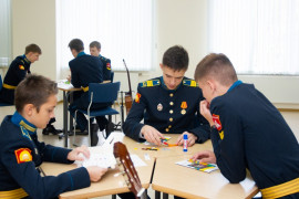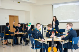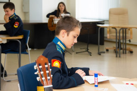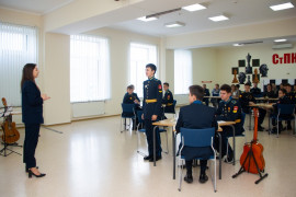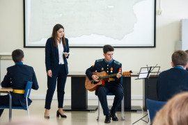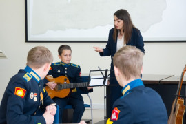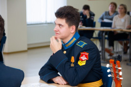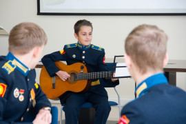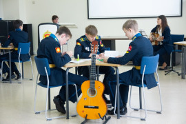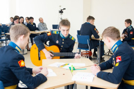 На уроке каждая деталь конструктора символизировала гитарный аккорд. Пользуясь инструкцией и отталкиваясь от поэтического текста, кадеты, занимающиеся по программе «Студия игры на гитаре», составили три варианта музыкальной композиции и исполнили их в конце занятия.