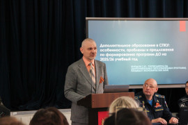 Заключительным стало выступление заместителя начальника училища (по учебной работе) Сергея Владимировича Степанова на тему «Актуальные вопросы совершенствования содержания и организации ДО в СПКУ в 2025/26 учебном году (предложения в проект постановления педсовета)».