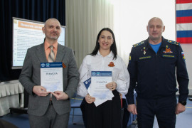 Ещё одна хорошая новость прозвучала на педсовете. Педагог допобразования Дина Валентиновна Самойленко стала бронзовым призёром Всеармейского конкурса профессионального мастерства «Педагог года – 2025» в номинации «Педагог дополнительного образования».
