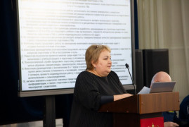 С докладом о том, как выполняются решения предыдущих педсоветов, выступила методист учебного отдела, секретарь педсовета Оксана Викторовна Крупина.