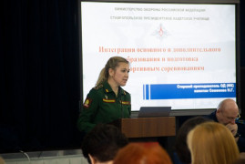 Теме подготовки спортсменов с использованием средств основного и дополнительного образования было посвящено выступление преподавателя основной дисциплины (физическая культура) Надежды Геннадьевны Семёновой.