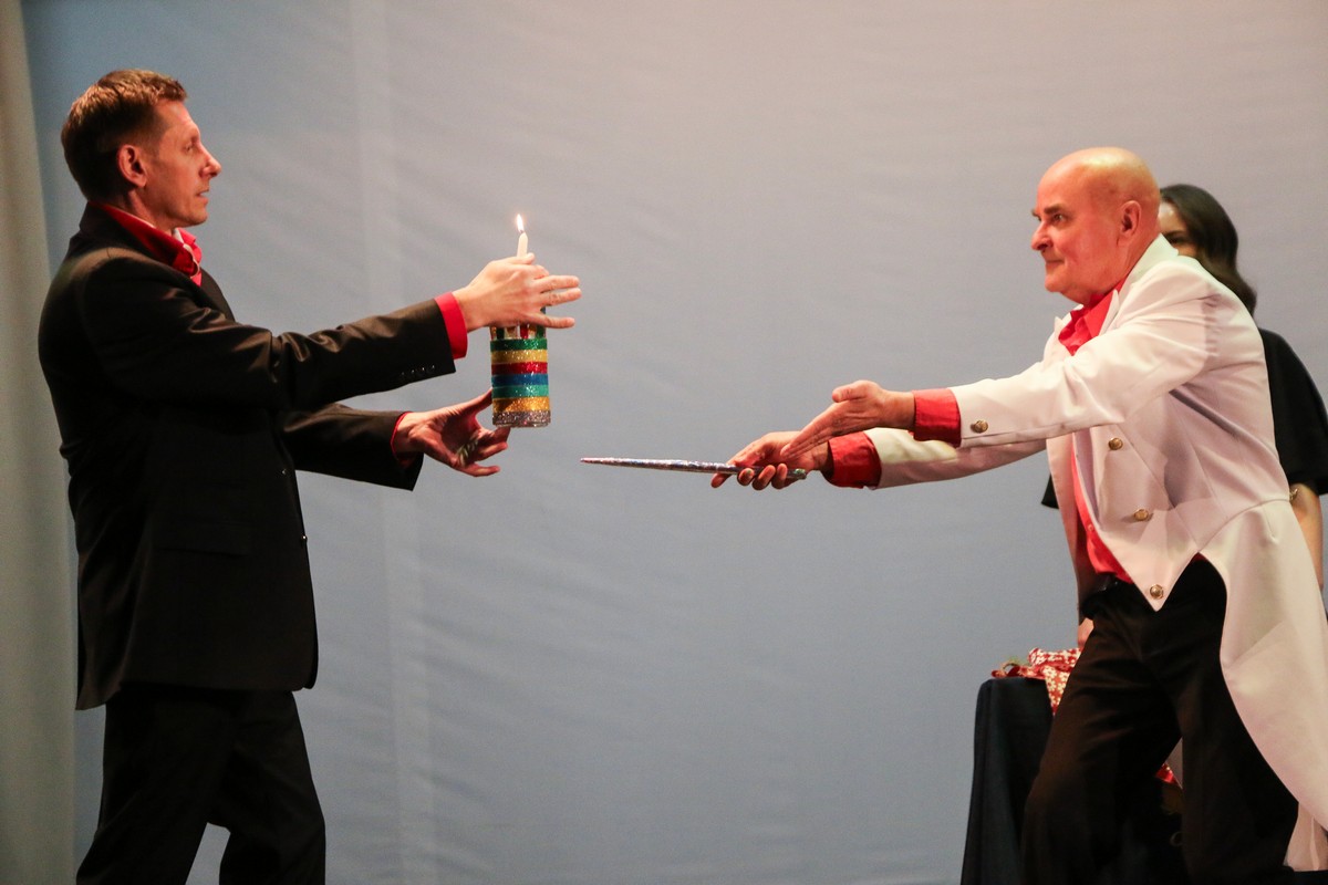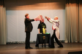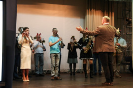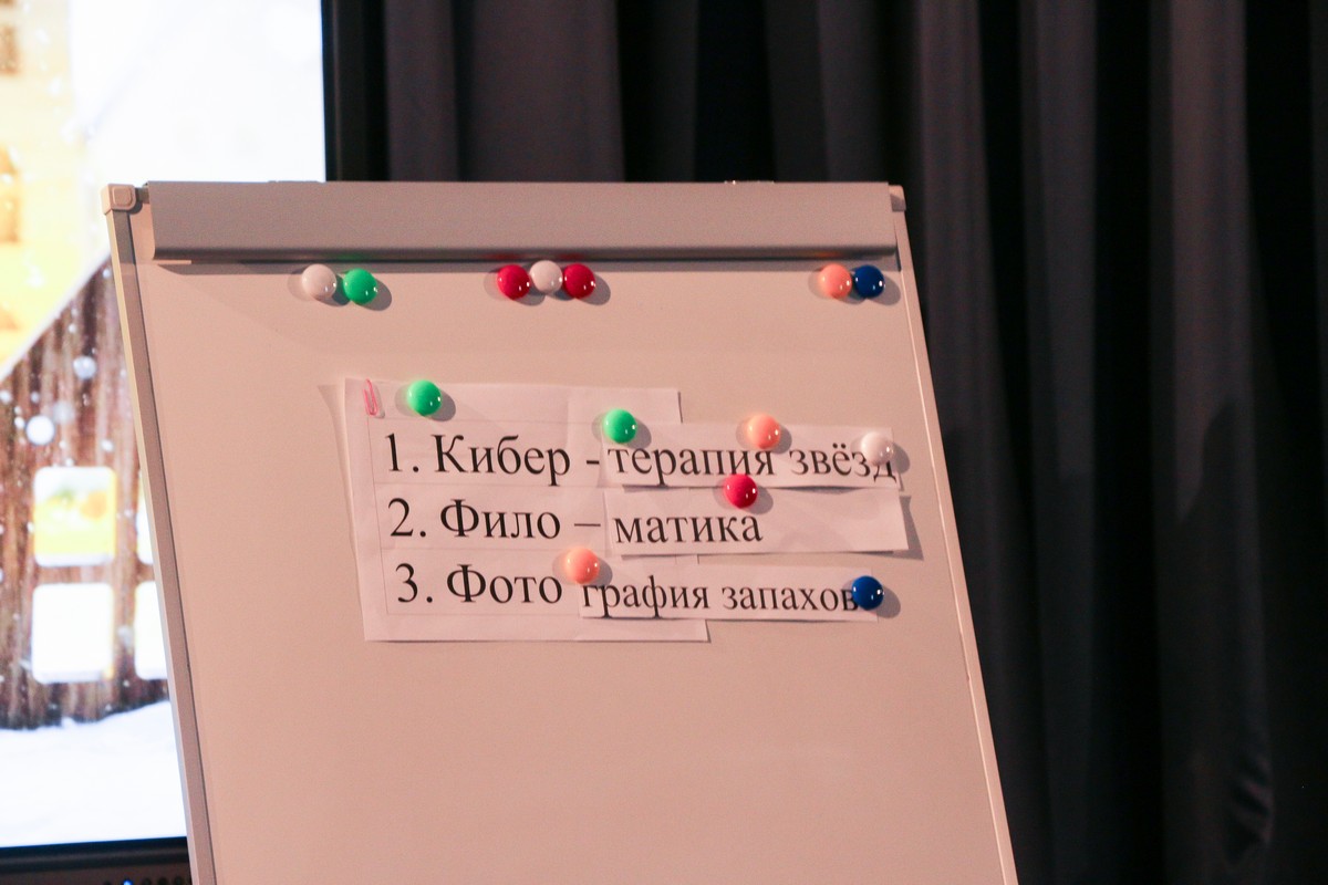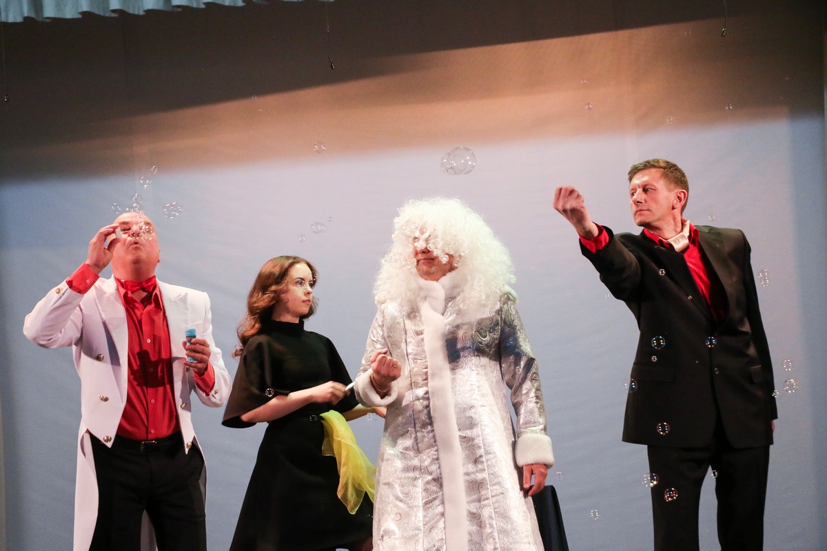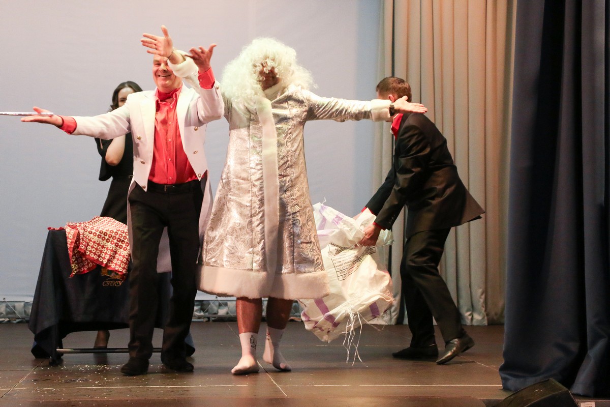 Шуточная пародия на игру интеллектуального клуба «Что? Где? Когда?», весёлое исполнение музыкальной композиции оркестром СПКУ, инструментально-вокальная презентация о педагогической работе от воспитателя Евгения Бердникова, коллективное творчество по созданию новых дисциплин, смешные фокусы с превращением методиста по социальной работе Марины Черномородовой в ещё одну неподражаемую Снегурочку, вокальные выступления солиста Ставропольской государственной филармонии Ильяса Батчаева и педагога и ведущего Игоря Мирошниченко – всё было неожиданно, по-новогоднему весело и подарило всем праздничное настроение.