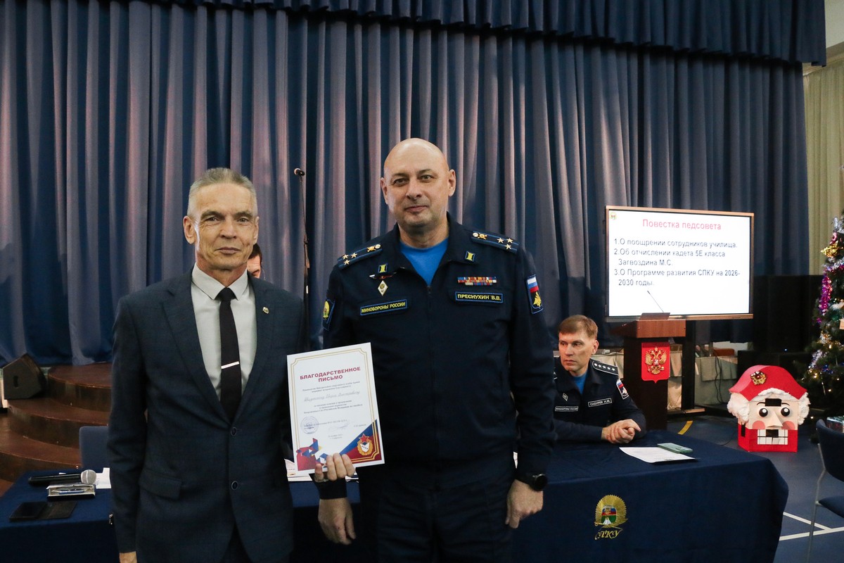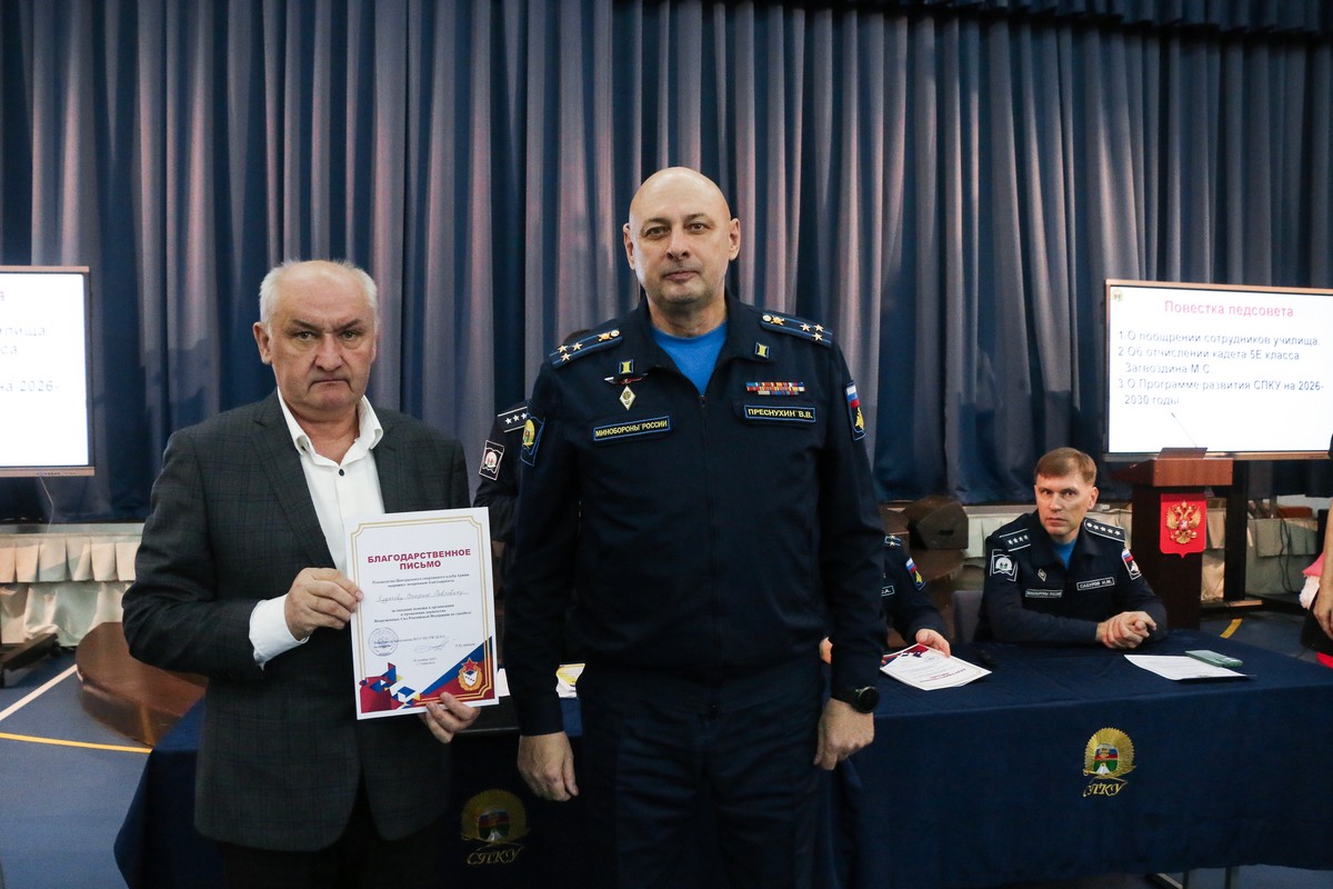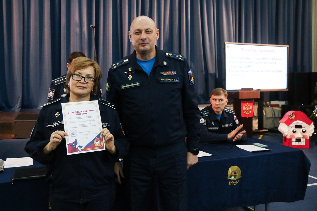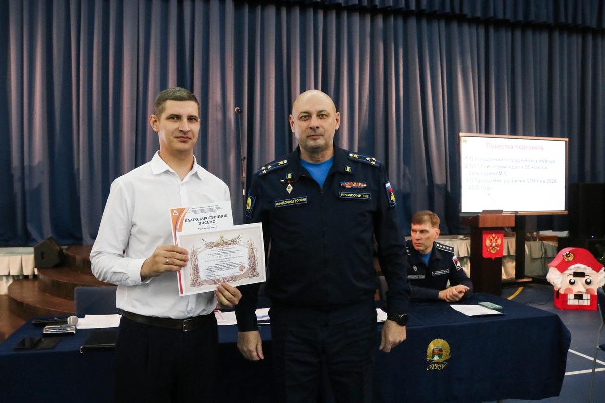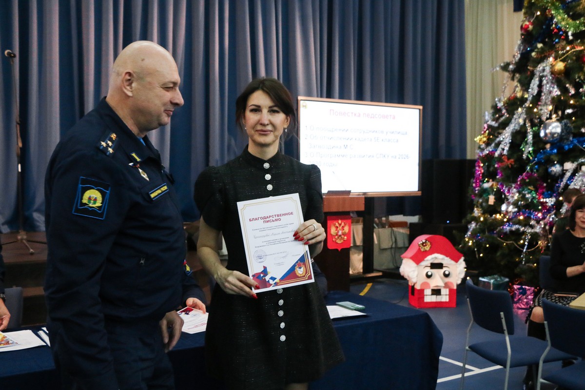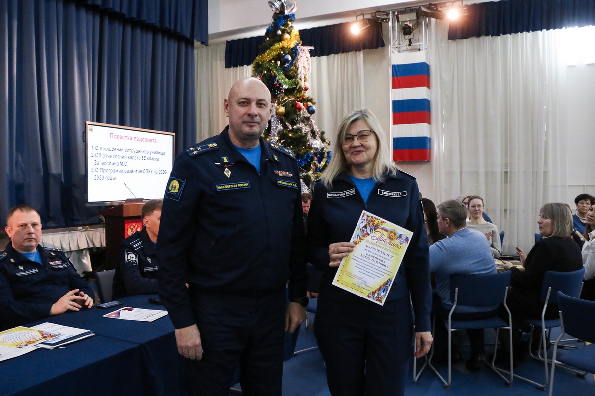 Завершился педсовет поздравлением начальника училища с наилучшими пожеланиями здоровья, благополучия и профессиональных успехов всех присутствующих в грядущем Новом году.