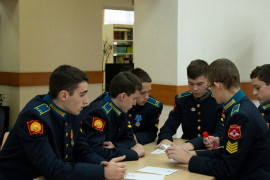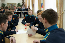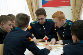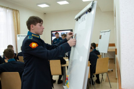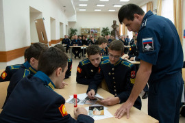 Кадеты очень внимательно слушали воспитателя, активно рассуждали и делали выводы во время занятия, дружно работали в группах.
