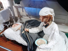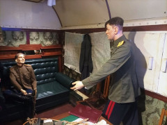 В поезде есть вагон-военный госпиталь, вагон-концлагерь, вагон-окоп, военный штаб или баня.