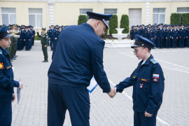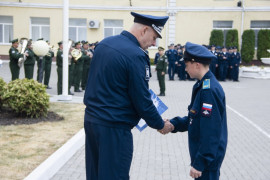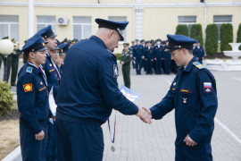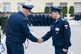 После этого состоялась торжественная церемония награждения кадет за их успехи. Дипломы лауреатов международного детского творческого конкурса получили лучшие пианисты училища Эмиль Волков и Ахмад Джапаров. Очень много было за минувшую неделю спортивных достижений кадет. Так свои заслуженные награды получили победители и призёры фестиваля Шпаковского округа по Армейскому рукопашному бою, победители соревнований по плаванию на кубок города Ставрополя и открытого первенство Ставропольского края по двоеборью.