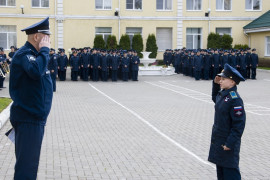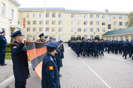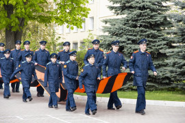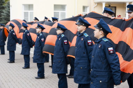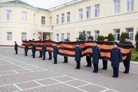 Завершилось построение прохождением торжественным маршем личного состава двух училищ с равнением на двадцатиметровое полотно Георгиевской ленты.