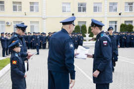 Началось построение как всегда с торжественного поднятия флага Российской Федерации. Продолжилось построение церемонией награждения кадет за победы и достижения в спортивных, творческих и интеллектуальных состязаниях различного уровня, которые состоялись на минувшей неделе. Так, свои заслуженные дипломы за успехи в научных исследованиях получили кадеты – участники Ставропольской краевой открытой конференции школьников им. В.С. Игрополо.