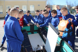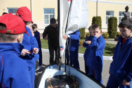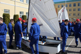 Пятиклассники СПКУ с Яхт-клубом сотрудничают давно, летом планируется провести совместную с клубом практику по яхт-спорту на Сенгилеевском озере. А пока воспитанники 1 учебного курса на суше учились расправлять парус, управлять яхтой, вязать узлы, перемещаться по судну, знакомились с терминологией профессиональных яхтсменов и изучали тонкости парусного дела.
