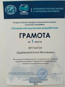 В конкурсе «Лучшая методическая разработка» преподаватели географии Ставропольского президентского кадетского училища Елена Витальевна Щербакова и Сергей Юрьевич Борздов стали абсолютными победителям, заняв 1 место в ходе очной защиты конкурсной работы «Интегрированное внеурочное мероприятие «Военно-топографическая игра»».