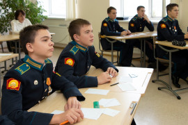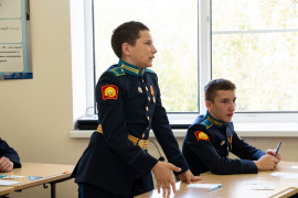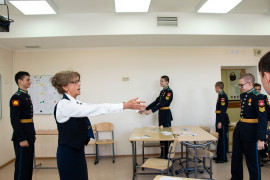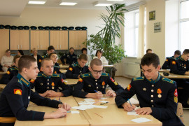 Открытый урок-игра по геометрии «Решение задач» прошёл у девятиклассников Ставропольского президентского кадетского училища. Провела увлекательное занятие преподаватель математики Валентина Александровна Джуль.
