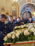 Отец Игорь подробно рассказал об истории Храма, познакомил кадет с сюжетами из Евангелие, изображенными на стенах Храма, подробно остановился на каждом образе, почётно разместившемся на деревянном Иконостасе. Больше всего кадет впечатлил открытый Алтарь, который кадеты увидели впервые. После интересной экскурсии кадетам разрешили подняться на колокольню и осмотреть красоту прилегающей к Храму территории, а Отец Игорь напоил всех присутствующих липовым чаем, собранным лично на территории Храма.