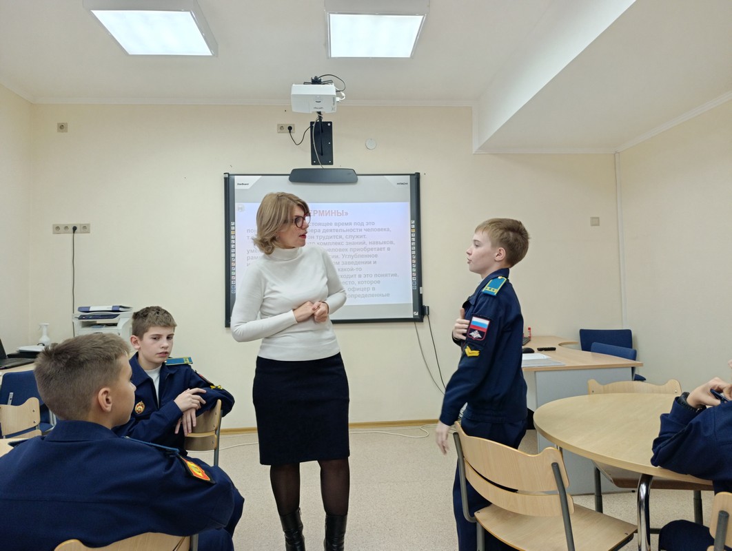 Занятие началось с обсуждения мотивации выбора профессии. Илона Евгеньевна уделила внимание вопросам самоопределения, ценностей и личностных качеств, необходимых для успешной службы в армии. Кадетам 6А класса были предложены упражнения на выявление интересов и склонностей. Дискуссия была направлена на формирование осознанного подхода к выбору профессии, подчеркивая важность соответствия личностных характеристик требованиям военной службы.
