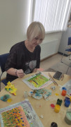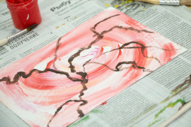 Участники группы рисовали в необычных техниках: левой рукой, пальцами рук, «вверх ногами», выходили за контур.