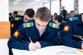 Воспитанники учебного курса 9-х классов Ставропольского президентского кадетского училища приняли участие в общегородском репетиционном ОГЭ по математике. Свои знания по этому предмету проверяли 112 девятиклассников училища. Репетиционный ОГЭ прошёл в обстановке максимально приближенной к реальной: заполнение экзаменационных бланков, задания и отведённое для их решения время – 3 часа 55 минут – всё как на настоящем экзамене.