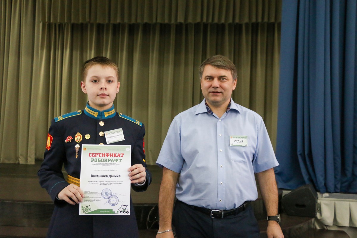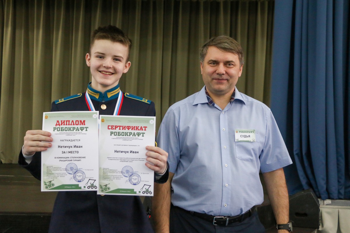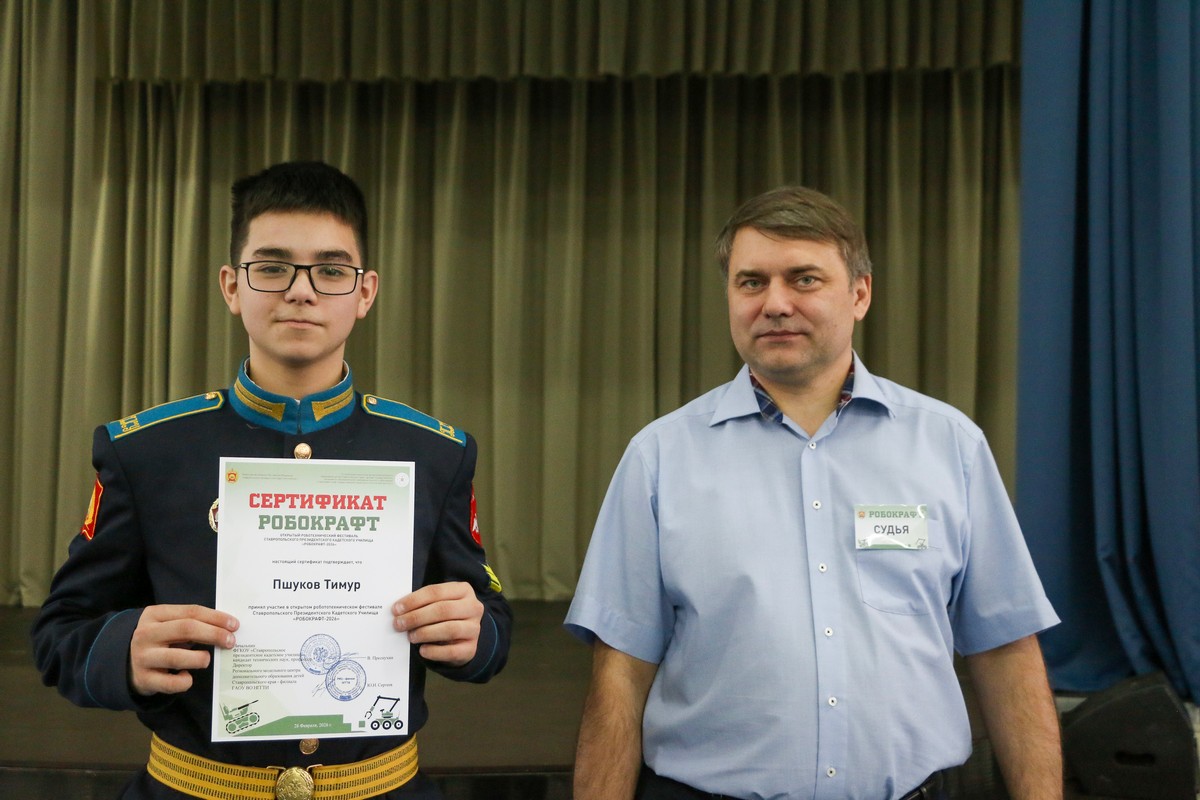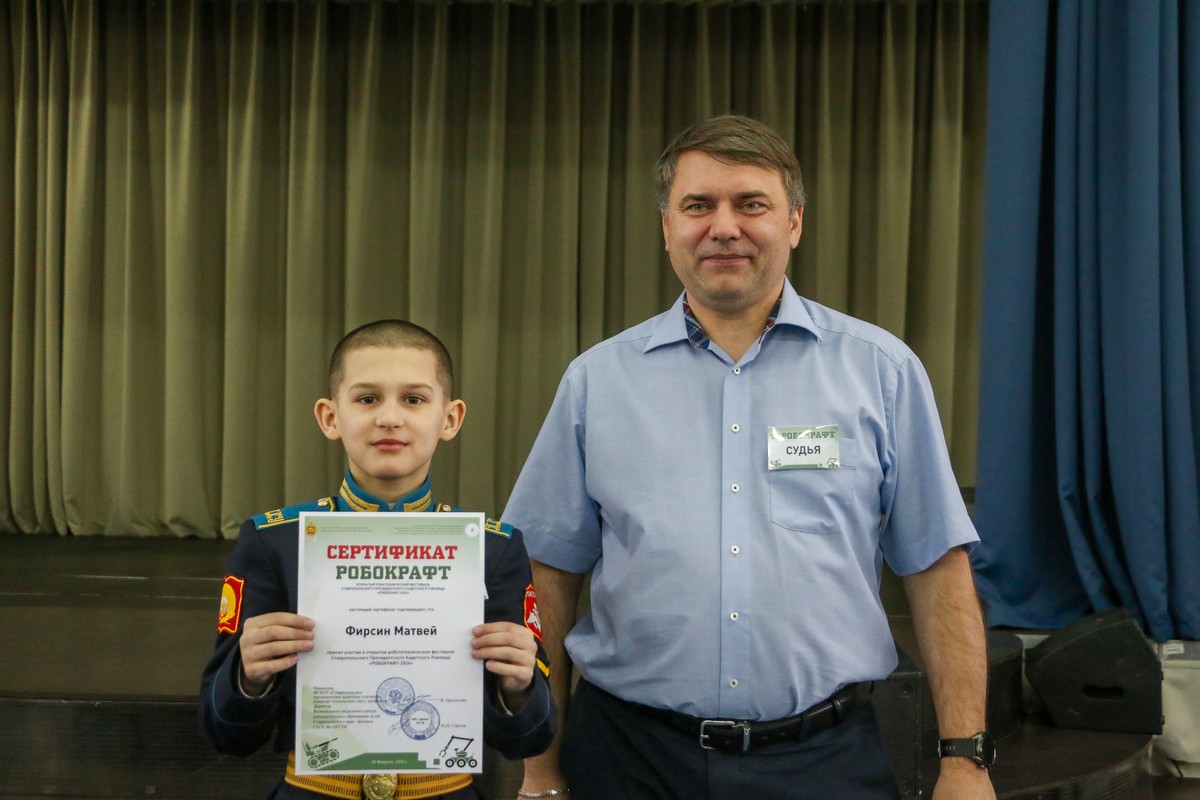 В Ставропольском президентском кадетском училище прошёл Открытый робототехнический фестиваль «РОБОКРАФТ-2026». Мероприятие направлено на развитие технического творчества, интеллектуального потенциала и инженерного мышления молодёжи, демонстрацию достижений в инженерно‑технической сфере, а также укрепление имиджа училища в регионе. Организаторами фестиваля выступили Федеральное государственное казенное общеобразовательное учреждение «Ставропольское президентское кадетское училище», Региональный модельный центр дополнительного образования детей Ставропольского края – филиал государственного автономного образовательного учреждения высшего образования Невинномысский государственный гуманитарно-технический институт.