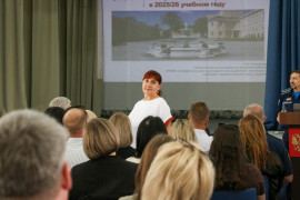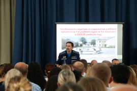 Заместитель начальника по учебной работе Сергей Владимирович Степанов предоставил детальный анализ специфики учебного процесса, характерного для пятого курса, акцентируя внимание на инновационных методиках и подходах, применяемых в образовательном процессе.