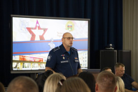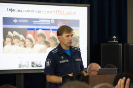 Начальник училища Вячеслав Валерьевич Преснухин приветствовал родителей и представил руководящий и педагогический состав Ставропольского ПКУ. Рассказал об истории, традициях, правилах, успехах и достижениях училища.