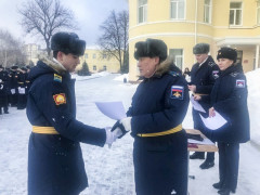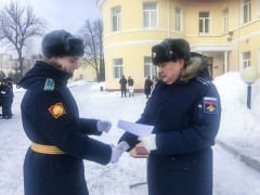 Затем старший воспитатель Ризабек Кабайдуллович Акинжанов и педагог-организатор Оксана Сергеевна Романова вручили грамоты (приказ № 135 от 20.02.2023 г.) от начальника училища Вячеслава Валерьевича Преснухина за особые личные заслуги, разумную инициативу, усердие и отличие в учёбе и в честь празднования Дня защитника Отечества и поздравили следующих кадет: