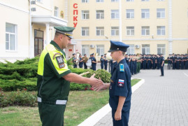 Одним из торжественных и приятных моментов построения стала церемония награждения кадет и сотрудников за достижения в спорте, творчестве, за их активную жизненную позицию.