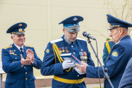 Затем выступили почётные гости: председатель Ставропольской краевой организации Общероссийского Профсоюза работников государственных учреждений и общественного обслуживания РФ Георгий Викторович Волков, председатель Совета ветеранов Ставропольского авиаучилища Виктор Владимирович Москаленко, выпускник СВАИУЛШ 1982 года, начальник Ставропольского высшего военно-авиационного инженерного училища (2003-2010 гг.), генерал-майор Дмитрий Николаевич Медяный.