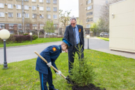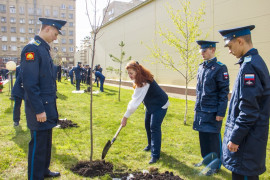 Затем почётные гости мероприятия вместе с кадетами приступили к высадке деревьев.