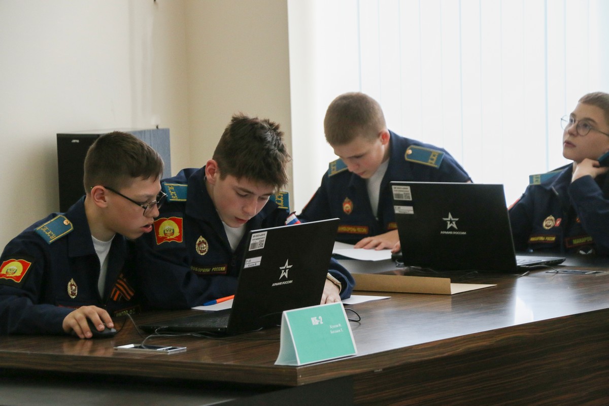 «Практики» из КБ-2 получили боевое распоряжение на оборону. Кадеты Тимур Батдыев и Филипп Куксов за считанные минуты с помощью геоинформационных систем оформили рабочую карту командира. Воспитатель Владислав Александрович Шинин подчеркнул: в реальном штабе такая работа занимает часы. А затем ребята с помощью лазерного дальномера наглядно доказали, что точное измерение намного эффективнее оценки «на глаз».