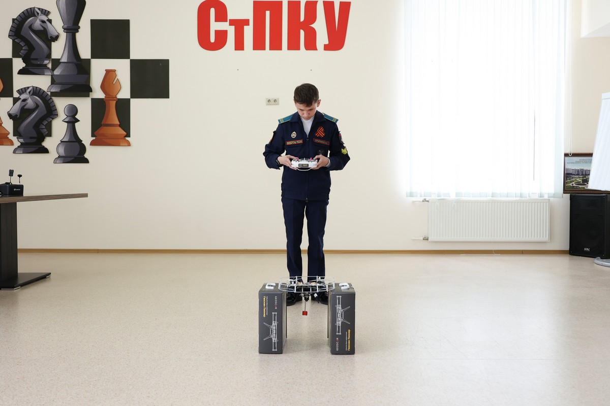Одним из самых ярких моментов стала работа «инженеров наземных служб»: кадеты Глеб Рязанов и Илья Скрыпников под руководством консультанта – педагога дополнительного образования Петра Алексеевича Докучаева, провели испытания БпЛА. Воспитанники не только управляли сложной техникой, но и замеряли предельные возможности дрона, делая выводы о его боевой эффективности.