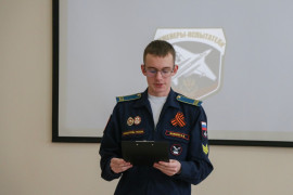 «Начальники» конструкторских бюро кадет Артём Мамонов, кадет Богдан Сапрыкин и кадет Иван Чалов представили «паспорта» специальностей: «Инженер-испытатель летательных аппаратов», «Военная топография», «Строительство, ремонт и поисково-спасательное обеспечение надводных кораблей и подводных лодок».