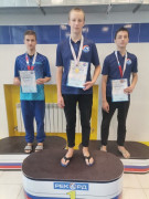 Воспитанники приняли старт на дистанции 100 м вольным стилем. Призовое второе место поделили Антон Сиротинский и Максим Залесов, чуть меньше повезло Александру Золотухину и Михаилу Диденко, они оказались на четвёртой позиции. Поздравляем кадет и их тренеров Игоря Владимировича Исакова и Андрея Владимировича Мазакова с высокими результатами и желаем дальнейших побед.