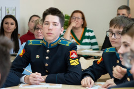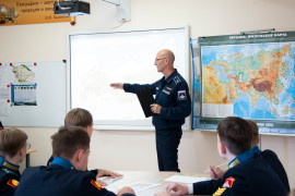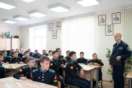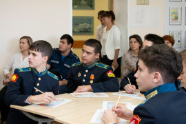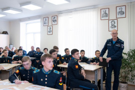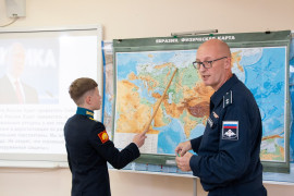 В рамках конкурса профессионального мастерства «Педагог года СПКУ – 2024» состоялся открытый классный час у воспитанников 9 «Б» класса Ставропольского ПКУ под названием «На службе Родине и флоту». Провел внеурочное мероприятие воспитатель 9 «Б» Виктор Евгеньевич Аношков.