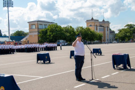 Весь личный состав училища ответил: «Родине служить!», после чего над площадью прокатилось троекратное «Ура!».