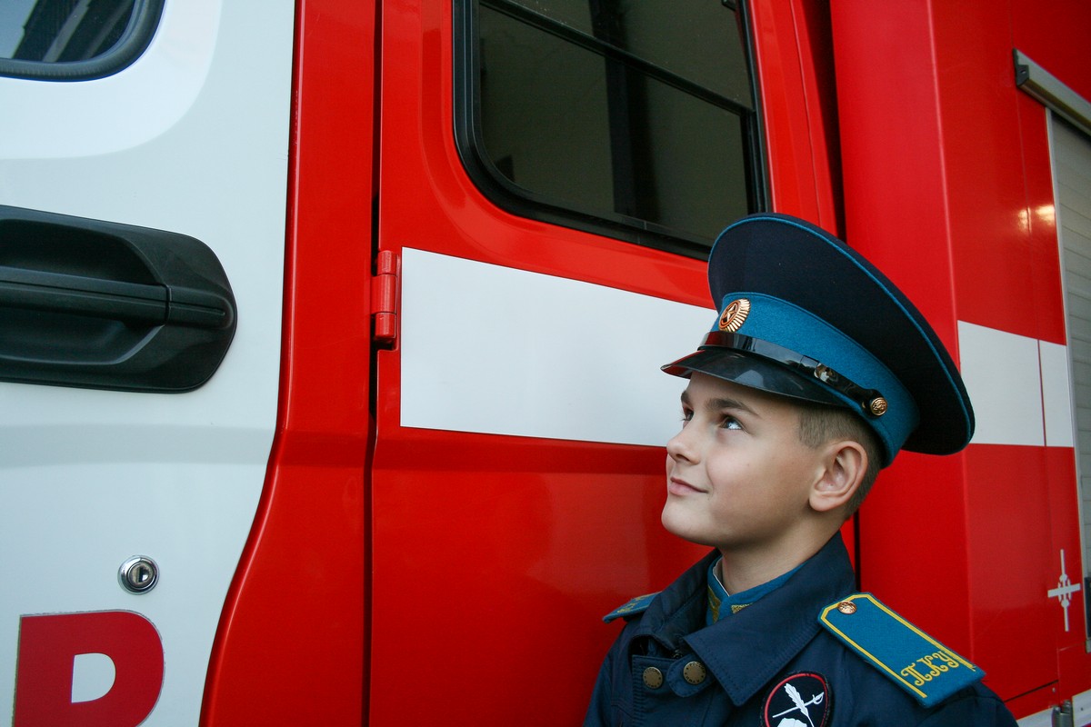 Вячеслав Семенович рассказал о создании первой пожарной службы в городе. Интересные истории из личного опыта. Затем кадетам продемонстрировали помещения, где дежурит и отдыхает бригада пожарных. Посещение гаража пожарных машин и возможность посидеть в кабине вызвал особенный восторг у кадет.