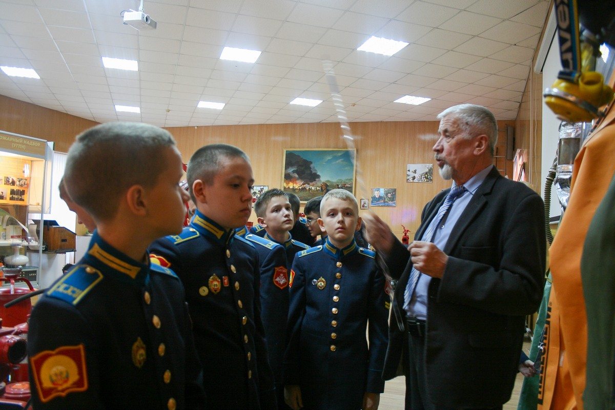 Воспитанники 6 «Д» класса Ставропольского президентского кадетского училища вместе со своим классным руководителем Натальей Владимировной Касумовой посетили музей Пожарной части № 8, отряд Федеральной противопожарной службы № 3 Ставропольского края в городе Ставрополе. Интересную экскурсию провел кадетам полковник внутренней службы, председатель ветеранов Главного управления МЧС по Ставропольскому краю Вячеслав Семенович Куркач.