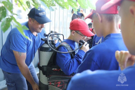 Спасатели противопожарной и аварийно-спасательной службы края, в свою очередь, продемонстрировали ребятам водолазное оборудование и снаряжение. Кадеты с большим интересом рассматривали и примеряли на себя водолазные боты, маски и подшлемники, в то время как представители ПАСС рассказывали им истории из своей профессиональной деятельности.