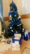6 «В» класс назвал чайную комнату «В гости к Снежной королеве». Украшения комнаты и ёлки были подобраны в едином сине-белом стиле. Кадеты могли посидеть на настоящем ледяном троне Снежной королевы, покормить с рук оленя, привёзшего подарки нашим воинам, выполняющим свой воинский долг.