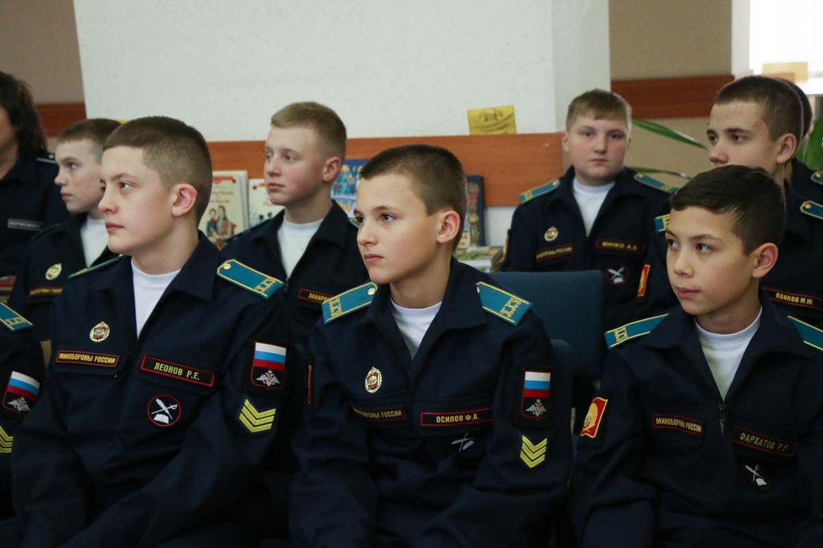 На информационном библиотечном уроке «Сильна героями Россия» кадеты узнали о выдающихся соотечественниках, чье мужество и отвага служат для нас вдохновением.