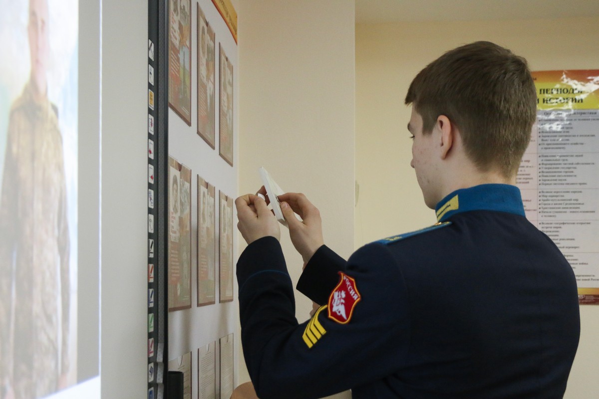 Самым ярким и запоминающимся моментом мероприятия были приветственные видеообращения от выпускников Ставропольского президентского кадетского училища 2019 года и родителей, находящихся на службе в зоне специальной военной операции. Совместно с преподавателем и воспитателем восьмиклассники наполнили символ «Z» прилагательными, описывающими образ современного защитника.