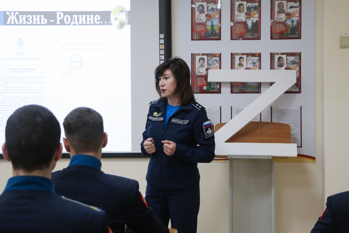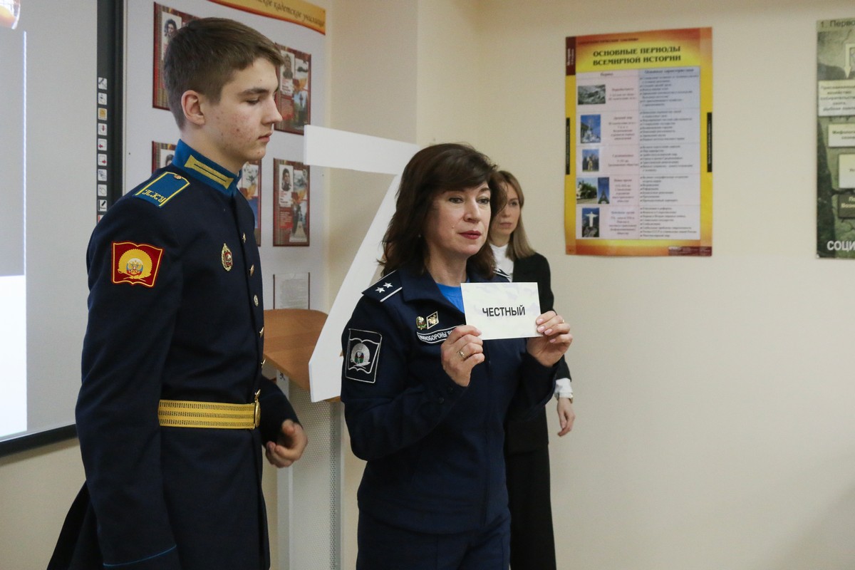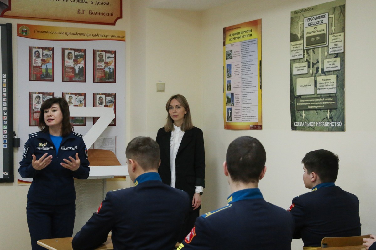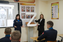 Патриотическое внеурочное мероприятие для воспитанников 8 «Г» класса Ставропольского ПКУ провели преподаватель ОД (иностранный язык) Марина Николаевна Денисова и воспитатель учебного курса Ольга Владимировна Коршун. «Жизнь – Родине...», - так оно называлось. 2026 год – особый. Он посвящён укреплению дружбы, мира и согласия между всеми народами нашей большой и многонациональной страны. Его главная цель – укрепить взаимопонимание между народами. Об этом рассуждали на внеурочном мероприятии кадеты вместе с педагогами.