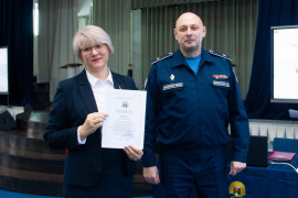 Инспектор по охране труда и технике безопасности Александр Фёдорович Чумак напомнил о правилах пожарной безопасности и поведении в случае эвакуации.