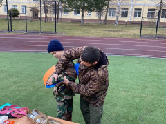 Особое внимание было уделено умению правильно пользоваться всеми средствами оказания первой медицинской помощи, что воспитанники и продемонстрировали, соревнуясь в эстафете. Каждый этап предусматривал выполнение того или иного норматива по наложению жгута, эвакуации раненого и т.д. Воспитателем Станиславом Борисовичем Подрезовым за основу каждого занятия берётся принцип, который высказал великий русский полководец А.В. Суворов: «Тяжело в учении – легко в бою». Воспитанники 7 «Е» класса подтвердили это, показав высокие результаты и настоящий профессионализм в военно-спортивной эстафете.
