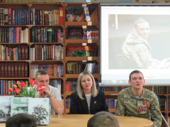 Гости и участники мероприятия посмотрели видео, на котором ставропольский поэт, а также участник СВО Сергей Лобанов читал стихотворение «Ты выжил там, где царствовала смерть», посвящённое подвигу своего друга Александра Луганского. Сборник стихотворений Сергея Лобанова «На поэтическом дежурстве» Луганский подарил библиотеке.