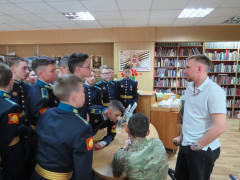 Встреча прошла в неформальной обстановке. После завершения официальной части, кадеты окружили гостей и буквально забросали вопросами о современной военной технике и вооружении армии России, о важности армейской дружбы и взаимовыручки, о применении маскировочных сетей и окопных свечей, которые ребята изготовляют для нужд спецоперации.