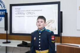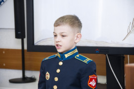 Завершило мероприятие выступление члена жюри, кадета 11 класса АДЕККК Максима Высочина, который давно увлекается авторской поэзией. Он говорил, о том, как мало места уделяется литературе в современном мире, о важности самовыражения, цитировал А.П. Чехова, Н.А. Заболоцкого, и пожелал всем участникам обязательно продолжать сочинять стихи.