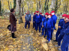 По завершению субботника кадеты приняли участие в пешеходной экскурсии по территории Даниловского некрополя. Кадеты посмотрели захоронения героев Великой Отечественной войны (лётчика Василия Зайцева, моряка-подводника И. Бурмистрова, участников партизанского движения Геннадия Голенева и Нелли Белявской и других). Также кадет провели до мест захоронения Братской могилы воинов, павших в боях за город Ставрополь в 1943 году и Братской могилы детям, умерших в годы Великой Отечественной войны.