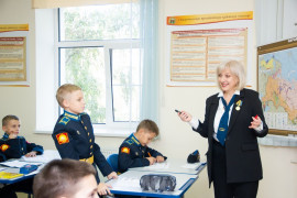 Открытый урок русского языка по теме «Исконно русские слова. Заимствованные слова» прошёл у воспитанников 6 «Д» класса Ставропольского президентского кадетского училища. Провела занятие преподаватель русского языка и литературы Елена Николаевна Михайличенко.